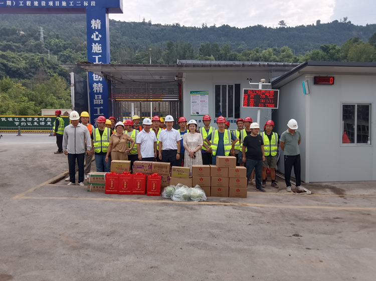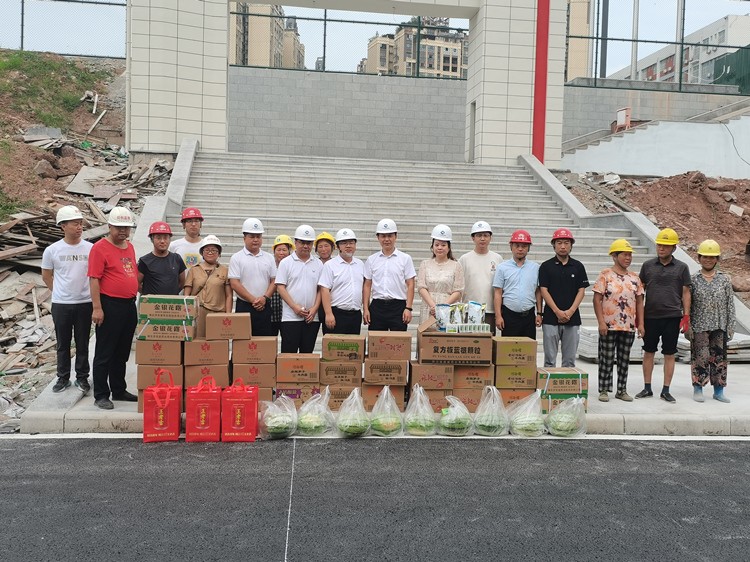 7月13日上午,公司黨總支副書記、總經(jīng)理馮晧帶領(lǐng)工會(huì)一行人來到公司投資建設(shè)的張家河生態(tài)修復(fù)工程建設(shè)項(xiàng)目、東西部協(xié)作產(chǎn)業(yè)園及基礎(chǔ)設(shè)施(三期)建設(shè)項(xiàng)目開展“送清涼”主題活動(dòng),慰問一線建筑工人、項(xiàng)目現(xiàn)場(chǎng)工作人員,為他們送去了礦泉水、飲料、西瓜、藿香正氣液、玄麥甘桔顆粒等防暑降溫用品。馮晧一行深入項(xiàng)目施工現(xiàn)場(chǎng),叮囑項(xiàng)目一線員工在高溫期間要牢固樹立安全生產(chǎn)意識(shí),科學(xué)合理安排作息時(shí)間,確保身體健康和施工安全。